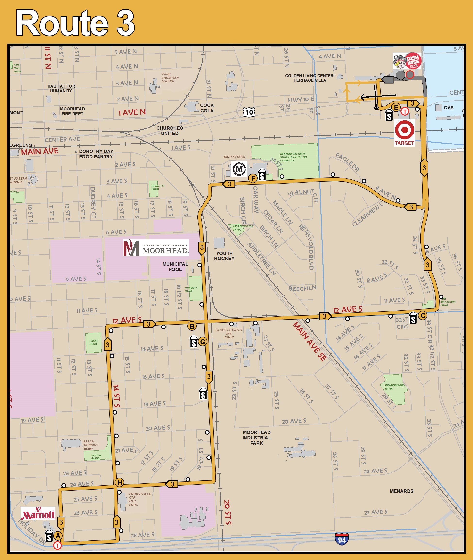 Route 3 will still need to pass by Runnings on it's way to Target. It will not be able to go by Cash Wise yet. See map below.