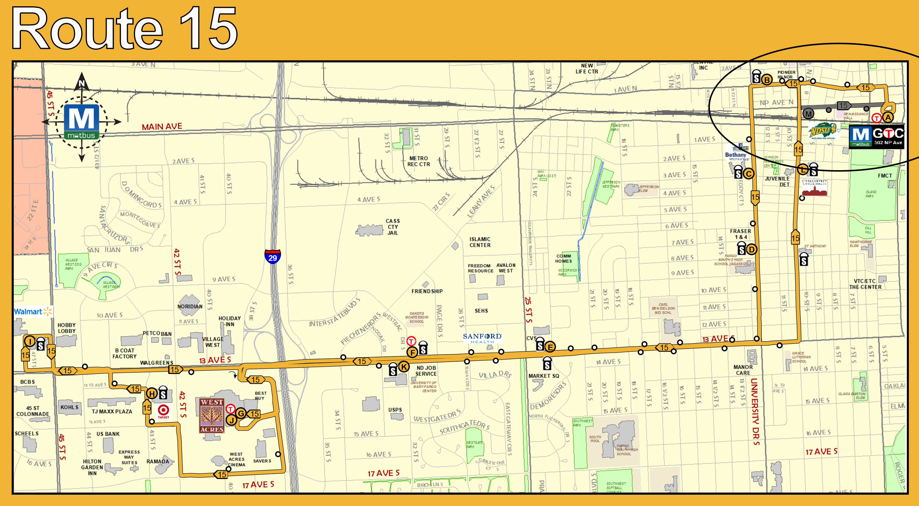 GTC, Holiday Station, Bethany Homes, Fraser Halls, CVS, West Acres, Target, TJ Max, Walmart, Job Service, Courthouse
