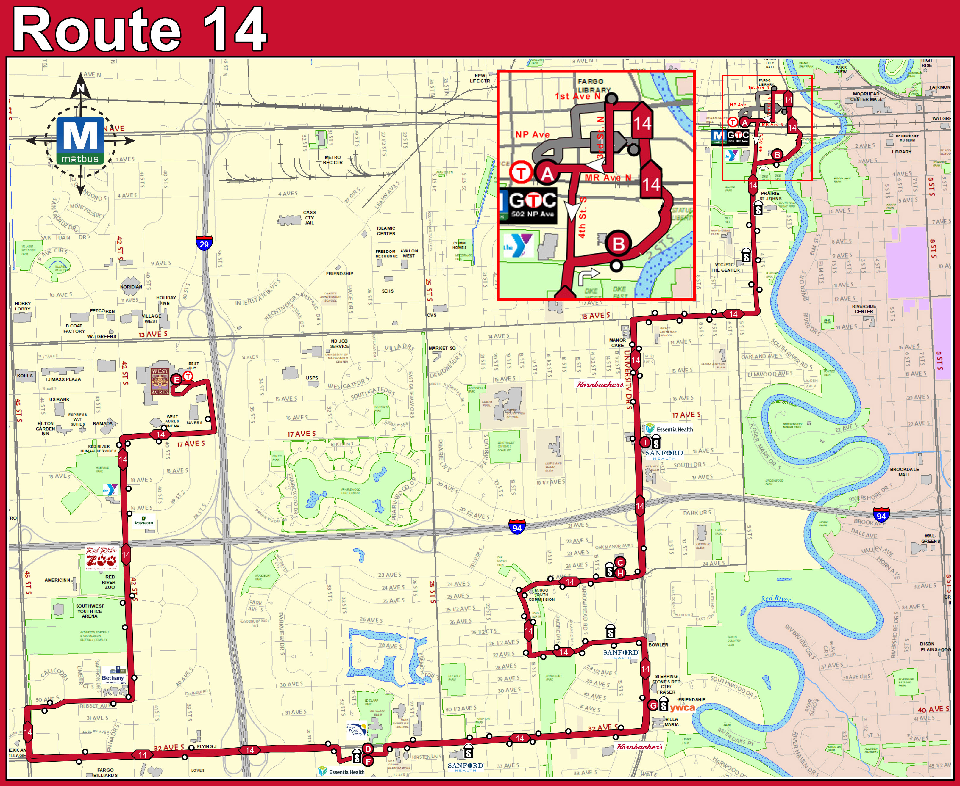 Due to buses parking in the 4th St. parking lot south of GTC, Route 14 will be detoured indefinitely.