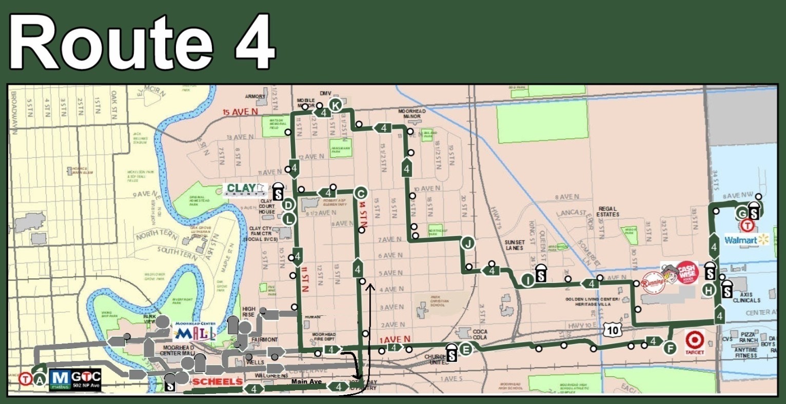 Route 4 will be detoured due to the St. Patrick's Day Parade on March 14, from 7:15am - 12:30pm. Route 4 will travel on Main Ave between 14th Street and the GTC.